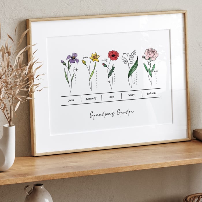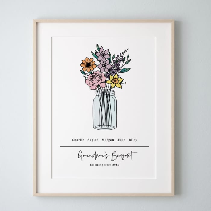 A sentimental, personalized print that beautifully represents the people you love most — perfect for Mother’s Day gifting, grandma gifts, or your own gallery wall.