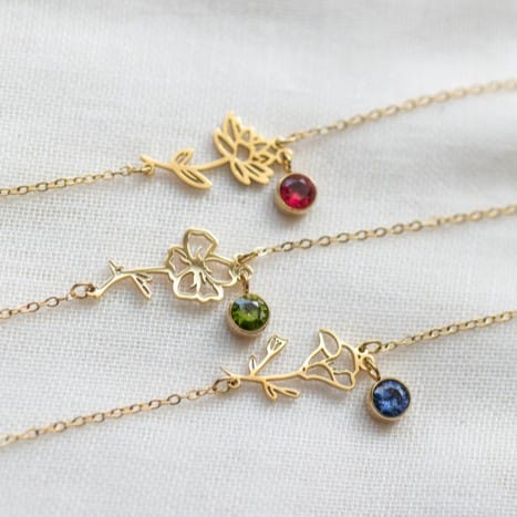 A meaningful bracelet that pairs birthstones with floral symbolism, making it a beautiful keepsake or thoughtful gift.